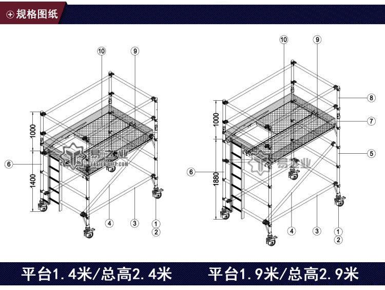 3,易之業(yè)制造廠家的專業(yè)性,鋁架做工精致精密,搭建誤差小,架子平穩(wěn),高度較高時無誤差,不會影響高度作業(yè)的使用。