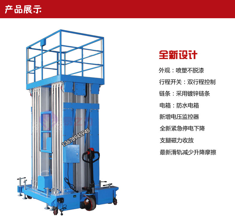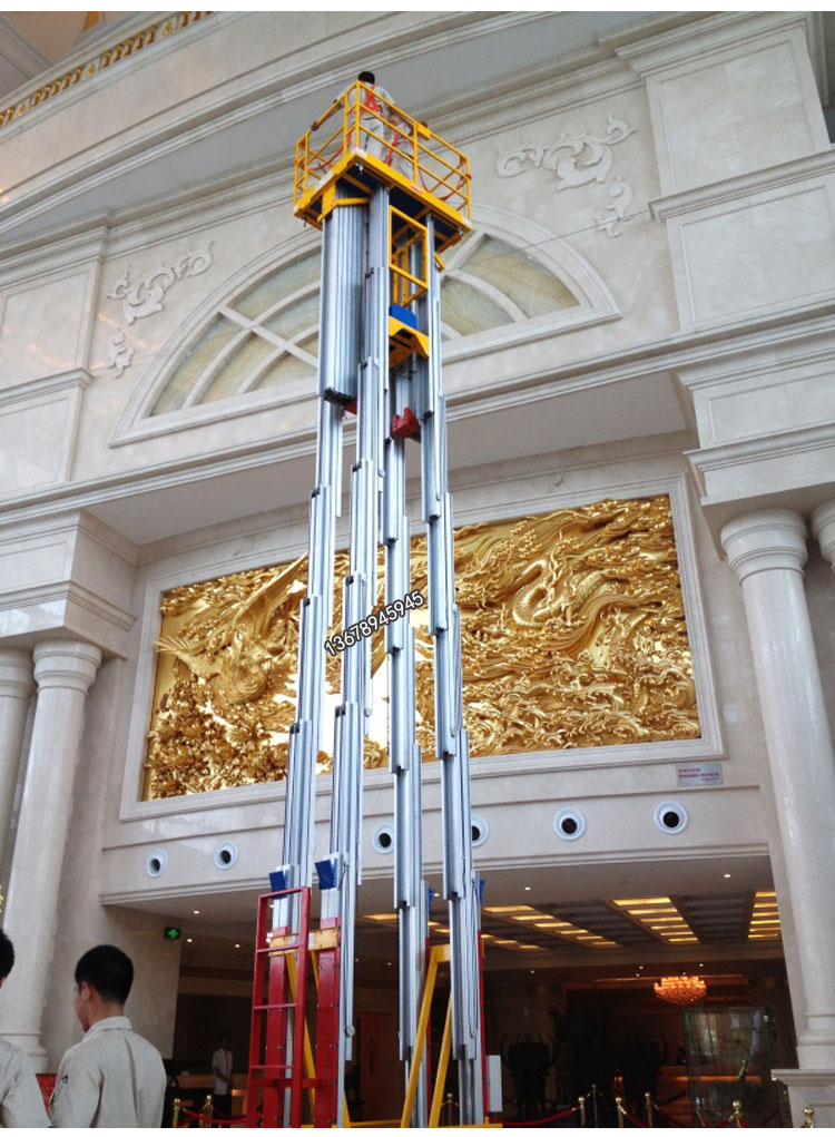 鋁合金升降機(jī)采用高強(qiáng)度優(yōu)質(zhì)鋁合金材料,具有造型美觀、運(yùn)轉(zhuǎn)靈活,推行方便。升降平穩(wěn)、安全可靠等優(yōu)點(diǎn)。它輕盈的外觀,能在極小的空間內(nèi)發(fā)揮較高的舉升能力。廣泛用于工廠、賓館、餐廳、車站、影劇院、展覽館等場所,是保養(yǎng)機(jī)具、油漆裝修、調(diào)換燈具、電器、清潔保養(yǎng)等用途的理想安全伴侶。