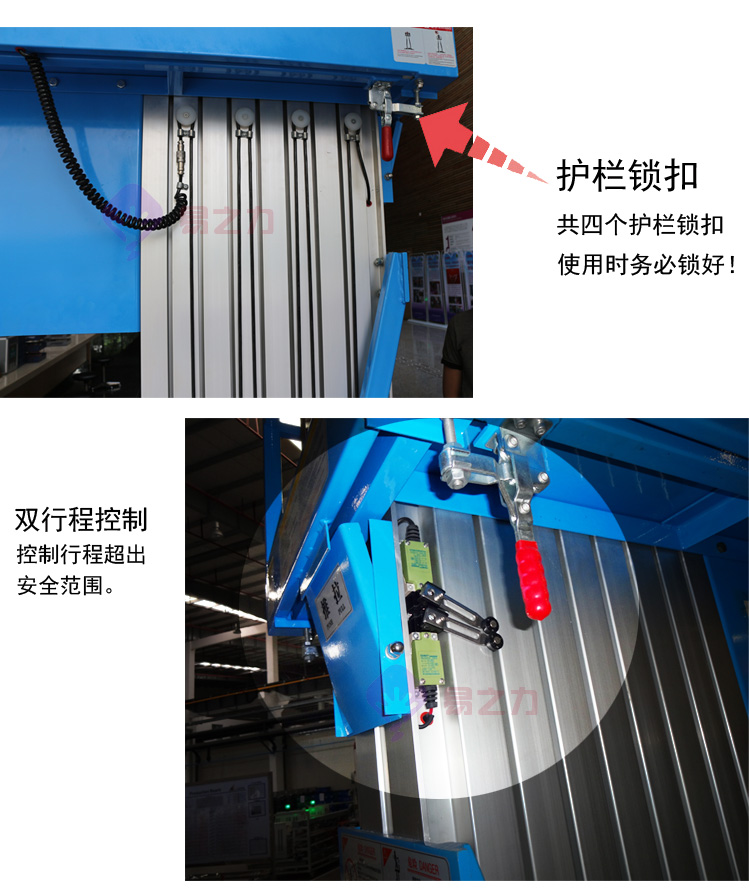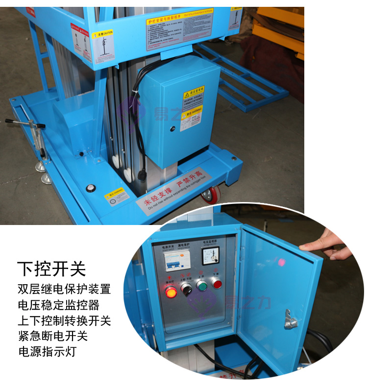 液壓式鋁合金升降機(jī):全新設(shè)計的新一代產(chǎn)品,整體由高強(qiáng)度鋁型材精制而成。由于型材強(qiáng)度高,使升降臺的偏轉(zhuǎn)與擺動極小。雙桅柱式的結(jié)構(gòu),載重量大,平臺面積大,穩(wěn)定性極好,運(yùn)轉(zhuǎn)靈活,推行方便。兩個桅柱提升平臺,能適合兩人工作作業(yè),加強(qiáng)平臺穩(wěn)固性。它輕盈的外觀,能在極小的空間內(nèi)發(fā)揮最高的舉升能力。該升降機(jī)廣泛用于廠房、賓館、大廈、商場、車站、機(jī)場、體育場等場所?捎米麟娏路、照明電器、高架管道等安裝維護(hù),高空清潔等單人工作的高空作業(yè)。