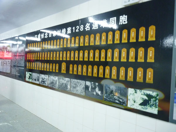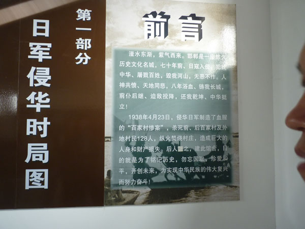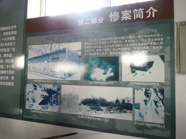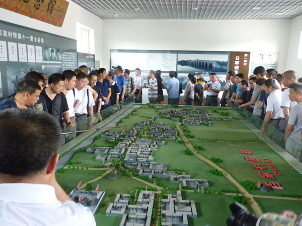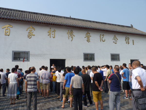 本次參觀作為公司“兩學(xué)一做”學(xué)習(xí)教育活動之一,意在讓廣大黨員牢記歷史,鼓舞斗志。紀(jì)念館的張館長年近70歲,他的長輩都是“百家村慘案”的受害者,他的爺爺在慘案中被殺害,他滿含悲愴地給大家講述了“百家村慘案”的經(jīng)過。盧溝橋事變后,日軍侵占了邯鄲駐扎在平漢路西側(cè)的龐村、孟仵、王朗村,日寇經(jīng)常到百家村搶掠騷擾、奸淫婦女,許多良家婦女遭受過鬼子的凌辱。一次次的搶掠,一次次的侮辱,激起了民憤!1938年4月23日,又有兩個日本鬼子到百家村尋找“花姑娘”,當(dāng)年的熱血青年郭運昌、郭永昌等十一名壯士不甘受辱,義憤填膺,奮起將兩個日本鬼子打死,為村民報仇雪恨!但是,日本鬼子發(fā)現(xiàn)少了兩個日本兵后,便一路尋找到百家村,將百家村的村長和百姓抓起來嚴(yán)刑逼供拷問。村民郭玉東被鬼子赤身綁在一棵樹上,無論鬼子問什么,他都說“不知道”,鬼子用刀在他的胸口、臉上亂戳亂劃,鮮血模糊了他的全身,但他仍一個字不說,鬼子又提來一壺開水,從他的頭上澆了下去…鬼子使勁了招數(shù),也沒有得到他們想要的東西。喪心病狂的日本鬼子又從人群里拉出師家一位年輕的媳婦,讓一個傻子當(dāng)眾對她奸污,師家媳婦受此奇恥大辱,掙脫后縱身跳入不遠(yuǎn)處的一口井里死去!日軍的暴行并沒有讓百家村的百姓們屈服,村民們不管男女老少任憑鬼子使勁任何淫威,沒有一個人招認(rèn)!日本鬼子見從老百姓的嘴里得不到他們要找的“兇手”,鬼子的小隊長下令把村民一個個綁了起來押往村外的西瓦溝,在村邊兩口井的旁邊開始了慘無人道的大屠殺!萬惡的日本鬼子將村民們有的砍下頭顱、有的開膛破肚,用刺刀挑出腸子,有的綁起來倒墜入井里活活嗆死,并用刺刀將大部分村民推入井里!前、后百家村除提前逃走的部分村民,剩余的整整128口人,不論男女老幼全部被鬼子殺害!瘋狂的日軍又將所有的尸體全部拋入兩口井內(nèi),再堆上麥秸,潑上汽油焚燒,并放火焚燒了整個村莊,制造了駭人聽聞、震驚冀南大地的“百家村慘案”!在日本侵略者侵略中國的8年時間里,象百家村慘案以及震驚中外的南京大屠殺慘案,日本鬼子不知道制造了多少起!二戰(zhàn)期間,日本鬼子在中國犯下的滔天罪行真是罄竹難書!