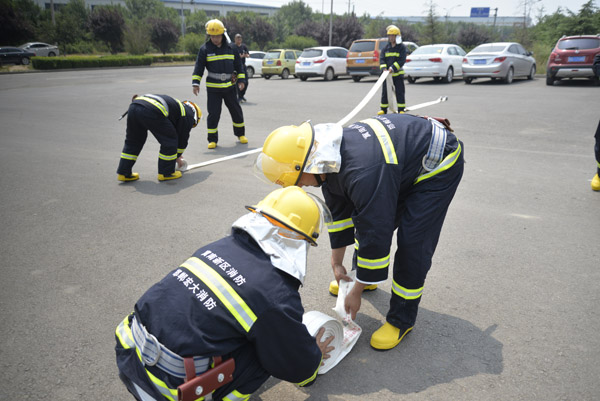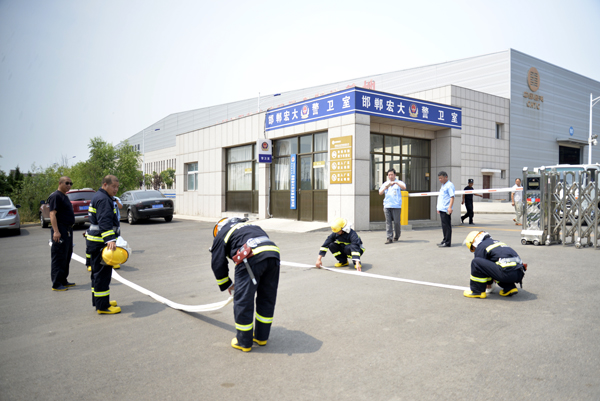 為了使公司全體員工了解消防基礎(chǔ)知識,提高安全防范意識,增強自我保護能力,掌握對突發(fā)火災(zāi)的應(yīng)變技能,學會滅火以及滅火中的自我保護,確保員工生命安全及公司財產(chǎn)安全,2017年6月29日上午,由邯鄲宏大武保處、安設(shè)處聯(lián)合組織的消防演習訓(xùn)練于上午10點正式開始。此次演習,也是武保處、安設(shè)處結(jié)合安全月組織開展的一次活動。演習訓(xùn)練除了武保處消防科6名消防員外,來自各分廠和處室的近60名義務(wù)消防員同時參加了消防演習訓(xùn)練。