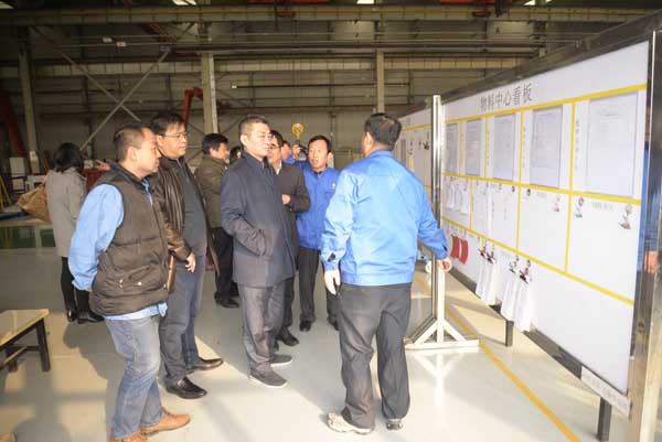 邯鄲宏大公司總經(jīng)理杜榮念、黨委書記邱進(jìn)才、黨委副書記、紀(jì)委書記、工會(huì)主席況聯(lián)勇、副總經(jīng)理王長(zhǎng)武陪同葉茂新一行視察了公司產(chǎn)品展廳。杜榮念對(duì)邯鄲宏大的發(fā)展歷程和未來(lái)發(fā)展規(guī)劃做了介紹,并結(jié)合產(chǎn)品模型和照片對(duì)企業(yè)的產(chǎn)品研發(fā)和銷售情況做了簡(jiǎn)介。之后,葉茂新一行視察了生產(chǎn)工作現(xiàn)場(chǎng)和生產(chǎn)處工作大廳。在生產(chǎn)現(xiàn)場(chǎng),主管生產(chǎn)的副總經(jīng)理王長(zhǎng)武就邯鄲宏大目前的生產(chǎn)形勢(shì)和企業(yè)的精益管理工作所取得的成績(jī)向葉茂新一行作了匯報(bào)。邯鄲宏大目前生產(chǎn)任務(wù)飽滿,職工們情緒高漲,正在大干四季度,為完成全年的工作目標(biāo)而努力,葉茂新對(duì)現(xiàn)場(chǎng)干凈整潔的環(huán)境,擺放有序的機(jī)件表示滿意。在視察機(jī)加工現(xiàn)場(chǎng)時(shí),王長(zhǎng)武結(jié)合現(xiàn)場(chǎng)的一個(gè)機(jī)件,詳細(xì)介紹了從原來(lái)的十幾道工序,經(jīng)過技術(shù)改進(jìn)和工裝的改進(jìn),現(xiàn)在只需要一次夾裝就可以加工完成,極大的提高了工作效率。在鉚焊分廠工作現(xiàn)場(chǎng),王長(zhǎng)武結(jié)合企業(yè)精益管理中實(shí)行的“配餐制”,職工們當(dāng)天需要加工的產(chǎn)品機(jī)件和圖紙、工裝、工具,一律由“配送中心”用配送車方式集中配送到每個(gè)人面前,職工們拿起圖紙和工具就能干活,大大減少了職工的準(zhǔn)備工作時(shí)間,提高了工作效率,職工們的收入也得到了相應(yīng)的提高。葉茂新對(duì)邯鄲宏大目前的經(jīng)營(yíng)生產(chǎn)形勢(shì)非常滿意,對(duì)企業(yè)搬入新廠區(qū)后翻天覆地的變化表示贊賞,并提出了很多指導(dǎo)性意見。