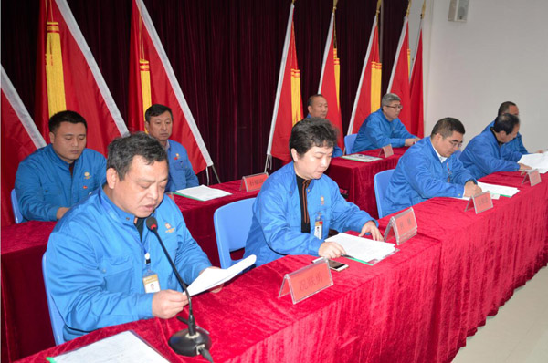 會(huì)議開始,高奏國(guó)歌。公司副總經(jīng)理王長(zhǎng)武宣讀關(guān)于表彰2017年度先進(jìn)集體、先進(jìn)個(gè)人的決定以及公司黨委表彰2017年度先進(jìn)黨支部、黨員先鋒崗、優(yōu)秀黨員及優(yōu)秀黨務(wù)工作者的決定。