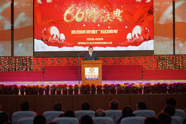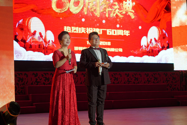 在激昂的樂(lè)曲聲中,公司總經(jīng)理杜榮念登臺(tái)致慶典賀辭。杜榮念代表公司全體領(lǐng)導(dǎo)班子,向多年來(lái)為邯鄲紡機(jī)發(fā)展做出過(guò)貢獻(xiàn)的全體員工、離退休人員以及社會(huì)各界朋友表示衷心的感謝!并深情地回顧了邯鄲紡機(jī)60年漫漫征程、如泣如歌的歲月歷程。邯鄲紡機(jī)60年的發(fā)展歷史光輝而坎坷,從1958年建廠至今,企業(yè)先后經(jīng)歷了1963年“下馬”、“文革”十年動(dòng)蕩、八九十年代市場(chǎng)經(jīng)濟(jì)轉(zhuǎn)型、紡織工業(yè)限產(chǎn)壓錠和國(guó)際金融危機(jī)等影響企業(yè)發(fā)展的困難階段。但是,邯鄲紡機(jī)人以堅(jiān)忍不拔的毅力和不畏困難、開(kāi)拓進(jìn)取的智慧,度過(guò)了一次次風(fēng)險(xiǎn),戰(zhàn)勝了一個(gè)個(gè)困難,不斷贏得發(fā)展機(jī)遇!特別是近十多年來(lái),企業(yè)經(jīng)過(guò)了持續(xù)改革改制、搬遷改造和企業(yè)轉(zhuǎn)型升級(jí)三次大的歷史性跨越。如今,企業(yè)經(jīng)過(guò)改制與搬遷,邯鄲紡機(jī)已經(jīng)蛻變?yōu)椤昂惡甏蟆、“邯鄲紡機(jī)”兩個(gè)新的單元!邯鄲宏大已經(jīng)初步形成了現(xiàn)代化企業(yè)的雛形,近兩年企業(yè)的銷售收入不斷創(chuàng)歷史新高!“實(shí)現(xiàn)邯鄲紡機(jī)輝煌”這個(gè)幾代人為之奮斗的夢(mèng)想,顯出了可喜的曙光!企業(yè)的產(chǎn)品已形成了以“紡絲、卷曲、切斷、打包”等為主線的幾百種產(chǎn)品——具備了腈綸、滌綸、氨綸、芳綸、維尼綸、芳噁唑、芳砜綸、粘膠、PBO、甲殼素及特種纖維、碳纖維等纖維設(shè)備整條線的開(kāi)發(fā)生產(chǎn)能力!非紡機(jī)領(lǐng)域的天然氣加氣設(shè)備、鑄造機(jī)械的研制成功,更增添了企業(yè)的發(fā)展實(shí)力!六十年的發(fā)展與變遷,六十年的不懈努力與沉淀,企業(yè)從生產(chǎn)單臺(tái)產(chǎn)品到出產(chǎn)整條生產(chǎn)線,為我國(guó)的紡織機(jī)械工業(yè)做出了巨大的貢獻(xiàn)!在今后的日子里,我們要不忘初心,砥礪前行!要一如既往的堅(jiān)持以人為本、全心全意依靠職工辦企業(yè)的發(fā)展路線,繼續(xù)堅(jiān)持技術(shù)創(chuàng)新、科技興企、產(chǎn)品轉(zhuǎn)型超越和管理升級(jí)的方針;始終堅(jiān)持“以客戶為中心,為客戶提供滿意的產(chǎn)品和服務(wù)”的經(jīng)營(yíng)理念,通過(guò)精益化管理,推行6S管理標(biāo)準(zhǔn),朝著“網(wǎng)絡(luò)化智能工廠”的目標(biāo)邁進(jìn)!為創(chuàng)造現(xiàn)代化的百年企業(yè)而努力奮斗!