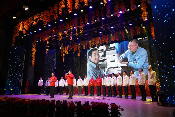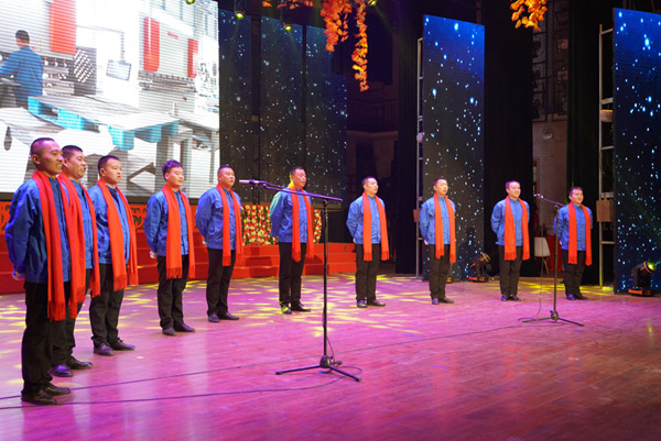 隨后,以總裝分廠50多名職工雄壯有力的大合唱《咱們工人有力量》開(kāi)場(chǎng),歌伴舞《不忘初心》,快板《唱宏大》,舞蹈《越來(lái)越好》,20多人的旗袍走秀,太極隊(duì)表演,詩(shī)歌頌《明天會(huì)更好》,三句半《為紡機(jī)職工點(diǎn)贊》,詩(shī)朗誦《情深意長(zhǎng)》,大合唱《再一次出發(fā)》等節(jié)目陸續(xù)登場(chǎng)。此次慶典活動(dòng),所有節(jié)目都是職工們自創(chuàng)自演、自編自導(dǎo)的原創(chuàng)節(jié)目,職工們情真意切、精彩紛呈的表演,深深地打動(dòng)了每一位觀眾,情到深處,許多觀眾潸然流下了激動(dòng)的淚水!整臺(tái)節(jié)目以宏大的場(chǎng)景、專業(yè)的水準(zhǔn),為邯鄲紡機(jī)六十周年華誕獻(xiàn)上了一場(chǎng)盛大的文化大餐!