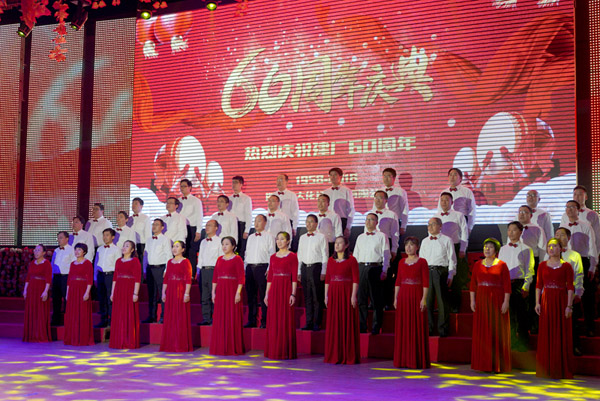 慶典活動(dòng)在全體演出人員和現(xiàn)場(chǎng)職工的齊聲合唱“歌唱祖國(guó)”中圓滿結(jié)束!