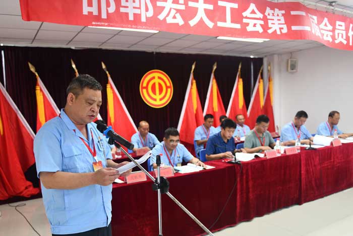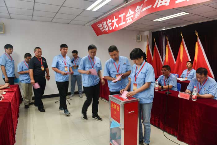 大會(huì)選舉況聯(lián)勇為第二屆工會(huì)主席,何巍、孟慶瑞為副主席,同時(shí)還選舉產(chǎn)生了邯鄲宏大工會(huì)第二屆委員會(huì)和經(jīng)費(fèi)審查委員會(huì)。來(lái)自基層的57名正式代表參加了大會(huì)。