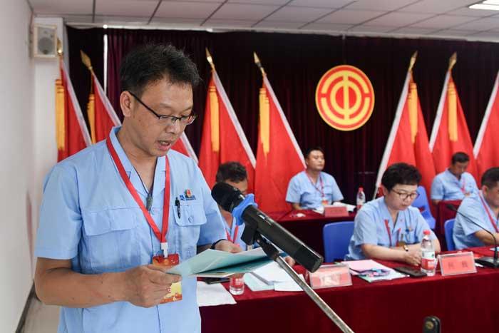 黨群部部長(zhǎng)孟慶瑞宣讀恒天重工工會(huì)《賀信》