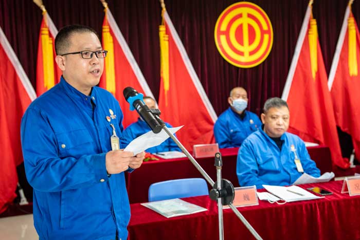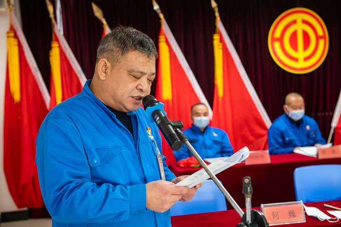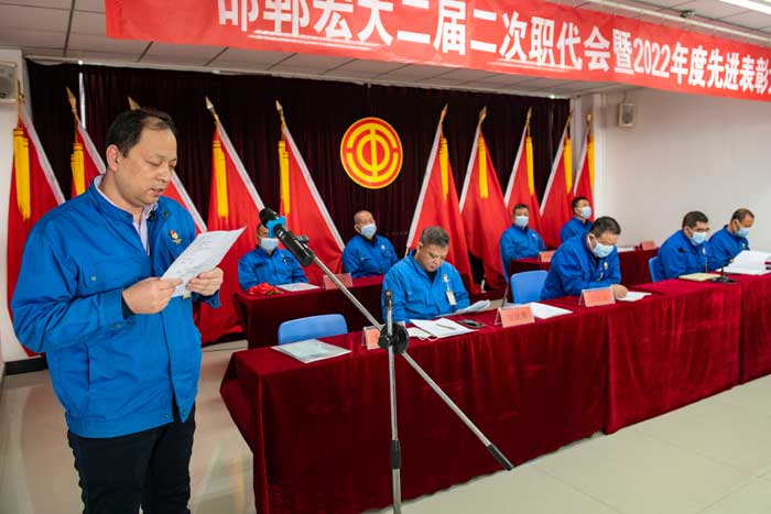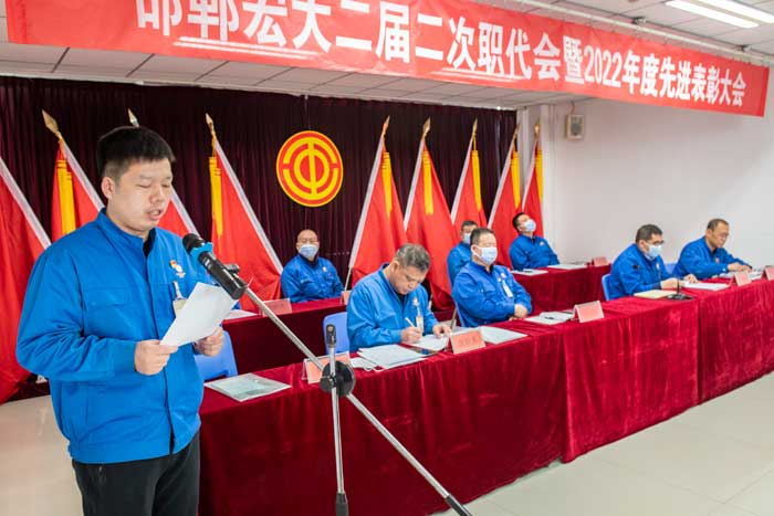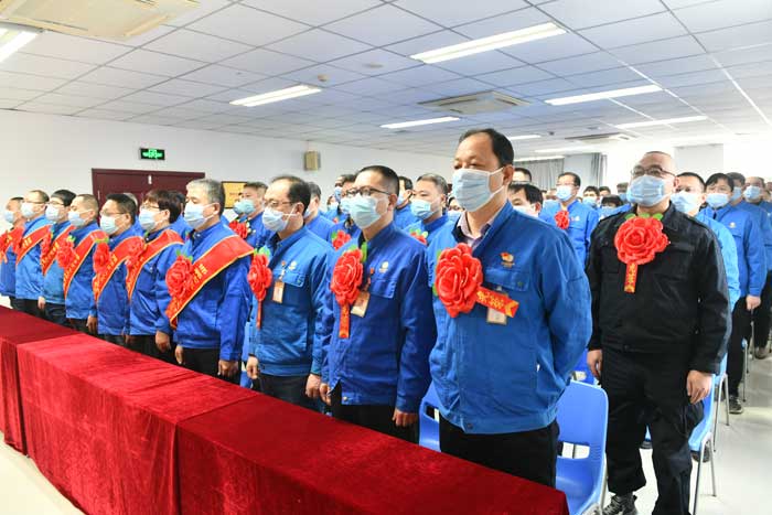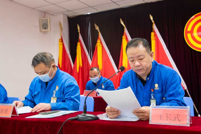 大會(huì)由工會(huì)主席況聯(lián)勇主持。雄壯的國(guó)歌拉開(kāi)了會(huì)議的序幕。