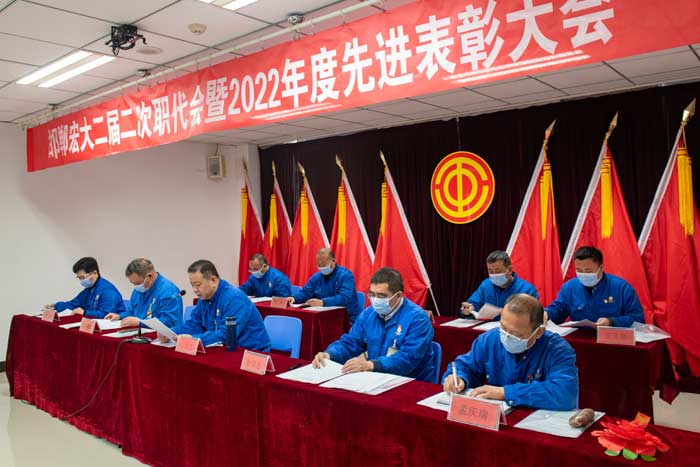受到表彰的公司勞模、先進(jìn)個(gè)人、先進(jìn)集體代表身披紅色綬帶,胸前佩戴紅花在會(huì)場(chǎng)前排就座。主席團(tuán)成員王長(zhǎng)武、王立偉、石福印、杜榮念、李秋、何巍、何躍澤、況聯(lián)勇、孟慶瑞在主席臺(tái)就座。非正式代表的公司級(jí)領(lǐng)導(dǎo)、各部門(mén)主要負(fù)責(zé)人列席了會(huì)議。