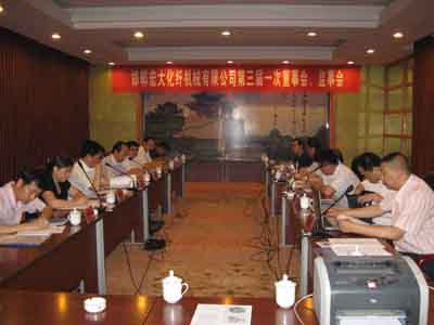 恒天重工邯鄲宏大化纖機(jī)械有限公司2010年第一次股東會暨第三屆第一次董事會、監(jiān)事會6月1日在邯鄲召開。會議選舉產(chǎn)生了新一屆董事會、監(jiān)事會組成人員并通過了相關(guān)的會議表決議案。杜榮念向大會作了總經(jīng)理工作報告和董事會報告。