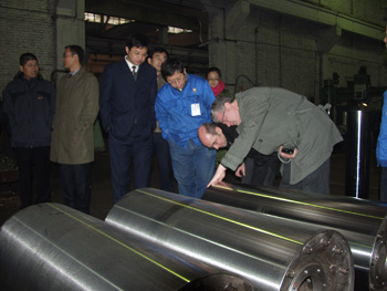2011年11月29日,集團(tuán)紡機(jī)事業(yè)部高級(jí)副經(jīng)理、中紡科技總經(jīng)理劉玉軍率德國(guó)AUTEFA公司CEO Dr. Stefan Schlichter等來(lái)我公司洽談交流。