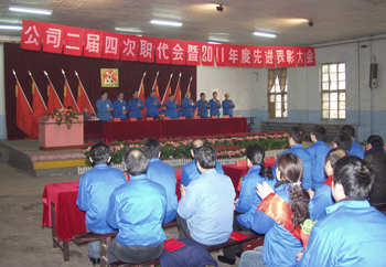 公司二屆四次職代會暨2011年度先進表彰大會于元月11日在多功能廳隆重召開。一元復(fù)始,萬象更新,職工代表齊聚一堂,群賢畢至、集思廣益、建言獻策,共同謀劃企業(yè)發(fā)展大計。