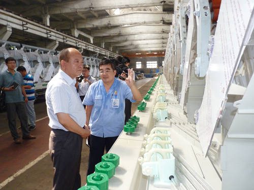 回建一行在邯鄲紡機(jī)總經(jīng)理杜榮念、黨委書記張鳳和的陪同下,先后對(duì)我公司機(jī)一分廠、機(jī)四分廠以及總裝分廠進(jìn)行了現(xiàn)場調(diào)研和走訪。在走訪中,回建市長對(duì)我公司的機(jī)加工實(shí)力比較滿意,并了解了正在安裝的KR/HD340型粘膠紡絲機(jī)和HV/HD163打包機(jī)的產(chǎn)品性能和銷售情況。隨后,在公司三樓會(huì)議室召開了座談會(huì)。